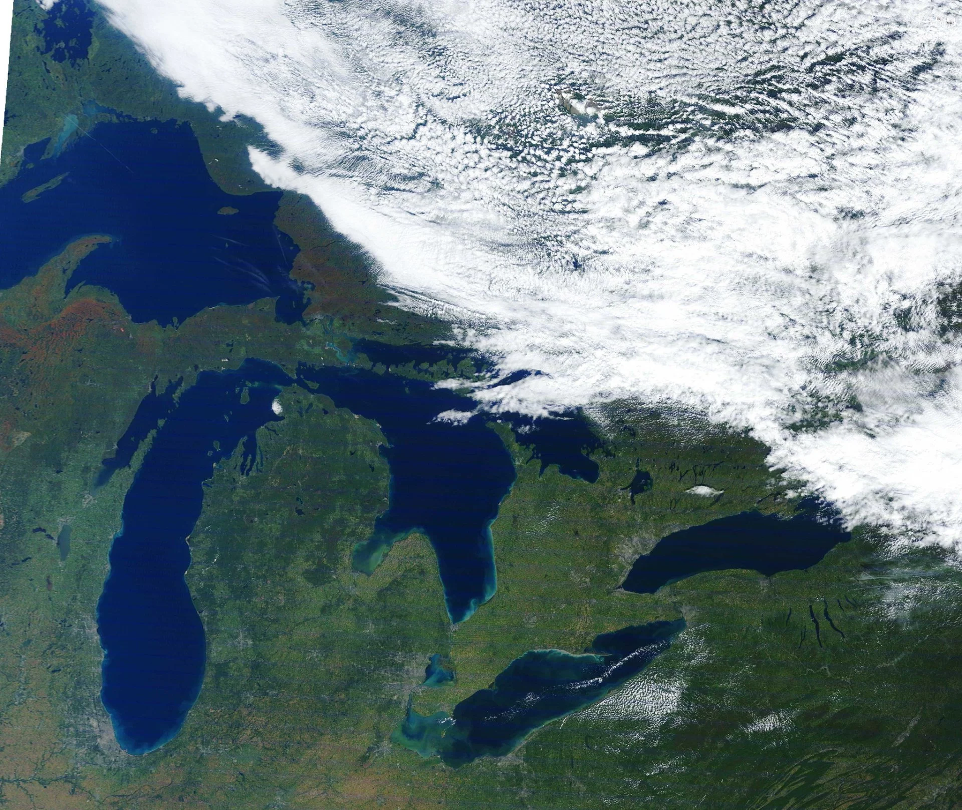 MODIS satellite image of Great Lakes. September 23, 2014. Photo by: NOAA Great Lakes CoastWatch